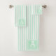 Élever votre décor de salle de bains avec nos serviettes de bain Monogrammed Initials Cabana Vert Menthe. Ces serviettes de bain sont ornées de rayures chic de cabane blanche contre un arrière - plan vert menthe rafraîchissant, parfait pour un look prêt pour l'été. Le design minimaliste est rehaussé d'élégantes initiales monogrammées, ajoutant une touche personnalisée. Idéales pour les amateurs de sports nautiques et de sports côtiers, ces serviettes allient style et fonctionnalité, ce qui en fait un complément tendance et sophistiqué à toute salle de bain. Restez élégant et girly avec cet ensemble de serviettes de bain élégant.