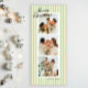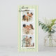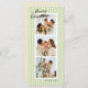 Petites rayures vertes et crème à la menthe donnent à cette trois carte de vacances photo une ambiance moderne et chic avec des polices classiques et un long message customisé pour les amis et la famille.