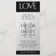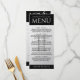Ajoutez de la sophistication aux célébrations du 11e anniversaire des mariages d'acier avec ce menu du dîner, qui comprend du lettrage élégant sur plaque de diamant, de l'acier usé et des arrière - plans noirs. Customisez avec le nom du couple, la date du mariage, les détails du lieu, les menus et les messages de félicitations. Design © W.H. Sim. Voir plus sur zazzle.com/expressionsoccasions