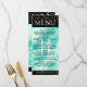 Ajoutez de la sophistication à la 11ème fête des mariages turquoise avec ce menu du dîner, qui présente des lettrages élégants sur le marbre jaune, le bleu verdâtre et les arrière - plans noirs. Customisez avec le nom du couple, la date du mariage, les détails du lieu, les menus et les messages de félicitations. Design © W.H. Sim. Voir plus sur zazzle.com/expressionsoccasions