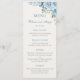 Menu 25th Wedding Anniversary Blue Floral Elegant