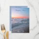 La collection de mariage de vue de plage comporte une belle scène calme et romantique de vue de plage. L'avant des caractéristiques de conception une photo de vue de plage des vagues calmes et romantiques roulant doucement sur le sable et l'herbe de la ligne de rivage au lever de soleil. La belle lueur du lever de soleil a moulé un choix de couleurs dans l'horizon et se refléter outre des ressacs. Pendant que vous regardez fixement dans les vagues de roulement vous pouvez presque sentir l'océan passer en coup de vent et goûter le sel dans le ciel. La photo a été prise au lever de soleil sur Hilton Head Island, la Caroline du Sud. Le postérieur de l'invitation est à l'origine conçu à une nuance bleue apaisante, mais peut être changé en n'importe quelle couleur en employant la "personnaliser il" caractéristique. Utilisez le modèle fait sur commande de mots pour personnaliser votre menu de réception de mariage avec vos propres mots. Cette conception est addition merveilleuse à tout extérieur ou échoue le mariage orienté.