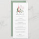 Conçus pour correspondre à nos invitations de dégustation de vin «Cheers to Love» pour les douches de mariée, les dîners de répétition et les soirées de fiançailles, les menus présentent une bouteille de vin rosé avec les initiales du couple sur un lit de feuillage aquarelle vert sauge doux. Personnalisez avec les détails de votre menu d'événement en lettrage gris classique.