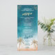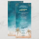 Ajoutez une touche de tropiques à votre événement avec cette superbe carte de menu. Le fond sarcelle est parfaitement complété par un design de palmiers dorés, lui donnant une belle atmosphère de plage. Parfaite pour un événement sur le thème de la plage ou simplement pour ajouter une touche de chaleur et de soleil à n'importe quelle occasion. La carte de menu est un excellent moyen de mettre en valeur vos créations culinaires, vos desserts ou vos boissons. Faites savoir à vos invités quels délices les attendent.