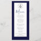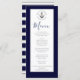 Menu Ancre florale à thème nautique Blanc et bleu marine Mariage Arrière - plan rayé