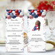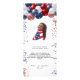 Carte menu fête d'anniversaire. Décoré de ballons patriotiques de couleur rouge bleu et blanc, bleu et rouge étincelant. Personnalisez et ajoutez un nom, un âge, une date et le menu. Retour : ajoutez une photo de la fille d'anniversaire, des faits amusants et des noms.