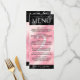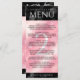 Ajoutez de la sophistication aux célébrations de l'anniversaire du mariage de quartz 2ème rose avec ce menu du dîner, qui comprend des lettres élégantes et des confettis hexagonaux sur des arrière - plans riches roses et noirs. Customisez avec le nom du couple, la date du mariage, les détails du lieu, les menus et les messages de félicitations. Design © W.H. Sim. Voir plus sur zazzle.com/expressionsoccasions