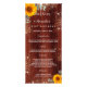 Carte menu fête d'anniversaire. Personnalisez et ajoutez un nom, un âge, une date et le menu. Bois brun rustique comme arrière - plan, décoré avec de la poussière de parties scintillant en faux or, tournesols aquarellés, et la végétation d'eucalyptus. Lettres de couleur noire.
