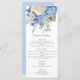 Menu Aquarelle bleu Hydrangea Roses blanches Mariage