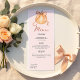 Ajoutez une touche d'automne charmante à votre baby shower avec cette carte de menu thématique "Un petit Citrouille est en route". Doté d'un citrouille de pêche à la pêche peint à la main et attaché à un ruban rose doux, ce modèle de menu vertical complète parfaitement une célébration du baby shower d'automne. Avec une police de script élégante et une palette neutre chaleureuse, il est idéal pour afficher votre délicieux entrée, plat et dessert dans le style. Customisez facilement pour correspondre aux détails de votre événement. Parfait pour les baby showers d'automne, les rassemblements sur le thème de la moisson ou les brunchs Thanksgiving en l'honneur d'un petit en chemin ! Célébrez l'amour, la nourriture et la venue de votre petit citrouille de la façon la plus douce avec cette carte de menu d'automne de bon goût.