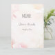 Carte de menu Mariage floral Aquarelle douce pour vos accessoires de réception. Conçu dans les tons rose et taupe doux, avec des branches florales délicates. Le texte comprend : Menu, Les prénoms de la mariée et de la mariée et la date du Mariage. Le texte inverse comprend : Sélections d'amuse-gueule, Entre Sélections et Dessert Sélections. Pour personnaliser, insérez simplement vos sélections de menu dans notre modèle facile, en remplaçant l'exemple de texte. N'oubliez pas de consulter la collection de papier à lettres Mariage Flush Blush pour les cartes et accessoires correspondants.