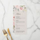 Impressionnez vos invités avec un menu de Mariage rose Rose Dusty à l'aquarelle superbement conçu. Ce menu présente des flores délicates en aquarelle dans des teintes douces et rose rose poussiéreuses, créant un look romantique et élégant qui complète n'importe quel thème mariage. Le design gracieux met en valeur chaque plat mariage, offrant une touche de sophistication à vos tables. Personnalisez le menu avec vos plats sélectionnés pour correspondre au style et au ton de votre journée spéciale.