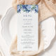 Menu Aquarelle Floral Dusty Mariage bleu