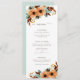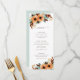 Un menu de mariage rustique mais élégant avec des fleurs d'aquarelle et du feuillage sur un arrière - plan blanc. Le côté inverse du menu est vert menthe. Un design parfait pour les rustiques ou les mariage de automne.