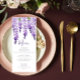 Ce design de carte de menu comprend des fleurs de glycine à l'aquarelle élégantes en lavande douce et violet avec des feuilles verts sur un arrière - plan blanc avec votre menu personnalisé ci-dessous. Le texte peut être personnalisé en modifiant les zones de texte. La couleur située à l'arrière du menu peut être modifiée dans l'éditeur. Conçu pour vous par Evco Studio © à www.zazzle.com/store/evcostudio #mariage #menu #menucard #wisteria #watercolor #weddinginspiration #botanical #foliage #floral #flowers #élégant #design #moderne #design #populaire #topsellers #coutume #tendance #mariage hivernal #mariage #mariage d'été #mariage d'automne #mariage d'fleurs #fiançailles #papeterie #personnalisées #personnalisées #destination #formelle #classic #célébration #white #lavender #lilac #violet #violet #green #function #party #planning
