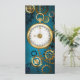 Arrière - plan turquoise, texturé, steampunk avec des engrenages en laiton et or, une clé en argent et l'horloge. Style Steampunk.