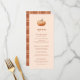 Faites une première impression de charme à votre baby shower d'automne avec ce menu Citrouille de Baby showers Plaid ! Cette adorable carte de menu donne le ton de votre fête d'automne. Bienvenue à votre petit citrouille au monde avec cette carte à la carte ! Il est pensé pour répandre la joie à votre douche d'automne tout en gardant tout organisé. Ce menu de baby showers citrouilles ludique est incontournable pour toute maman qui souhaite se préparer un bain créatif aux ambiances automnales. Montrez votre habileté impeccable d'hébergement et régalez vos invités avec cette carte de menu pleine de charme !