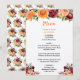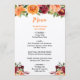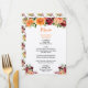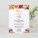This beautiful and elegant wedding menu features watercolor burgundy red and orange flowers with foliage. The text combines handwritten script and serif fonts for a stylish and modern look. This is perfect for an autumn fall rustic wedding.