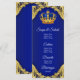 Menu baby shower Prince avec beau bleu royal et couronne d'or sur un élégant arrière - plan tourbillon bleu royal et or. Ces menus de baby shower royal bleu et or sont facilement customisés pour votre événement en ajoutant simplement vos détails dans le style de police n'importe quelle mise en page que vous préférez.