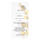 Carte de menu Baptême. Personnalisez et ajoutez un nom, une date et le menu. Arrière - plan blanc, texte noir. Décoré d'une grande tige d'eucalyptus doré et d'une fausse croix d'or. Retour : arrière - plan d'or.