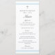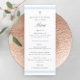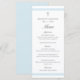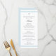 La carte de menu de baptême élégant classique est moderne, propre avec des rayures bleues pastel et une croix minimale avec du texte gris modifiable.
