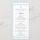 La carte de menu baptism classique est moderne et propre, avec des rayures bleu pastel et une croix minimale avec du texte gris modifiable.