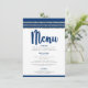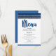 Menu Bar Mitzvah Modern Navy Blue Silver Tallit Script