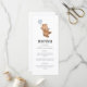 Carte menu avec un ours d'aquarelle douce tenant un ballon bleu. Dans ce design, vous pouvez changer la couleur du ballon.