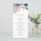 Elégant menu mariage floral avec des fleurs peintes à la main dans de jolis tons rose roux, bordeaux et bleu. Customisez votre propre menu mariage à l'aide du modèle fourni.