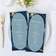 This is a Blue Gold Celestial Elegant Starry Sky Wedding menu.