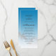 Elégant menu de mariage de destination avec un design de palmier tropical sur un arrière - plan bleu vif avec un script élégant et une typographie moderne. Le bleu d'Ibiza s'estompe sur un arrière - plan blanc. Ajoutez simplement les détails de votre mariage à cet élégant menu de mariage tropical de plage. Conçu exclusivement pour vous par Happy Dolphin studio.