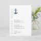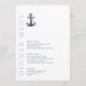 Les pièces de cette élégante suite de mariage présentent un style nautique classique et un style épuré et minimaliste. Des vagues stylistiques dans les teintes allant de l'aqua au bleu marine et une illustration d'ancrage et de corde apportent des accents uniques. Une disposition asymétrique, avec le texte optionnel "Dinner Menu" qui prévaut dans le format vertical, donne à ce faire-part de mariage une touche moderne saisissante. Idéal pour les mariages de club nautique, de bateau, de plage ou d'été. Recherchez ID836 pour voir cette suite complète et d'autres avec des accents d'éléments marins alternatifs.