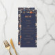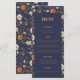 Cette belle carte bohème rustique est décorée d'une aquarelle fleurie aux teintes bleu foncé, rouille, écru et terre cuite. Modifiez facilement les noms de mariée et de mariée, la date du mariage et les éléments de menu. Si la taille de police ou les marges doivent être ajustées, veuillez entrer l'outil de conception pour ajuster le cadre de délimitation du texte ou la taille de police afin de mieux convenir à votre disposition. Si vous avez besoin d'aide, nous sommes heureux de vous aider. N'hésitez pas à nous envoyer un message en utilisant Zazzle Conversation. Bohemian Rust Blue Mariage campagnard Menu.