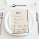 Cette BOHO Watercolor Fleur sauvage Elégant Beige Mariage Menu dispose de beaux fleurs sauvages bleus et jaunes, options de menu, texte optionnel sur le dos, et typographie moderne. Les invités de votre mariage aimeront avoir le choix de repas à votre mariage. Cet article est en coordination avec la Suite Mariage Beige Elégante Fleur sauvage BOHO. #wildflorermarris #purplemarris #bluemarris #yellowmarris #goldmarris #formalmarris #elegantwes #floralmarris #beigemarris