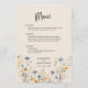 Menu BOHO Aquarelle Fleur sauvage Elégant Mariage beige