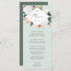 Les menus Boho chic floral mariage disposent d'un élément géométrique en haut avec vos initiales et votre date de mariage, encadrés par une bordure en aquarelle de feuillage botanique vert sauge et des fleurs de terre pastel dans des tons de pêche, d'ivoire et de blanc inspirés du désert. Personnalisez avec vos éléments de menu en dessous dans des lettres modernes. Conçu pour coordonner avec notre mariage Boho Blooms et notre collection événementielle.