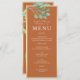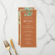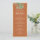Ce menu mariage présente un design rustique mais élégant, mêlant charme boho et touche botanique. Décoré d'aquarelle, de verdure d'eucalyptus et d'un script de calligraphie moderne, il présente une palette d'oranges brûlées en terre cuite et des accents d'or qui apportent une atmosphère sereine et sophistiquée à votre journée spéciale.