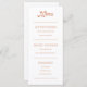 Un menu minimaliste en terre cuite moderne qui présente une typographie d'inspiration rétro et une pop de couleur orange brûlée en terre cuite pour la mariée d'automne. Une invitation qui se marie parfaitement avec toute esthétique mariage non traditionnelle.