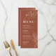 Ce menu se caractérise par un style boho, des oeuvres d'art florales, des couleurs terre cuite et beige, avec un mélange de différents styles de police, souvent de tailles différentes, pour créer un look unique et éclectique qui fait de ces menus une esthétique naturelle.