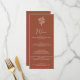 Boho Floral Terracotta Burnt Orange Menu Mariage moderne. Monogramme au fond.