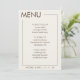 Menu simple de réception de mariage beige et marron bordé. Personnalisez-le avec les détails de votre événement.