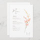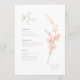 Cette suite mariage chic avec sa palette de couleurs chaudes et ensoleillées, sa police manuscrite et ses arrangements délicats de fleur sauvage a un look intemporel et sophistiqué qui impressionnera vos invités et aidera à rendre votre journée spéciale inoubliable. Ce menu mariage saisissant, présenté ici en blanc avec un agencement fleur sauvage aéré. fournit un modèle pour ajouter facilement vos sélections de menu. Recherchez ID1023 pour voir tous les produits de cette suite mariage.