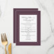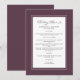 La conception de la carte de menu de mariage violet foncé présente une belle bordure chic en violet cassis qui comprend une élégante bordure blanche petite. La calligraphie et le script sont gris charbon sur fond blanc. Un modèle moderne comprend les noms des mariés, la date du mariage et un menu éditable, le tout dans une calligraphie tendance unique avec une conception de script. NOTE : La date du mariage affichée comme indiqué utilise la barre verticale ou la ligne qui se trouve au-dessus du \ sur un clavier ou sur votre appareil intelligent avec les caractères spéciaux. Vous pouvez également personnaliser avec n'importe quel autre caractère de votre choix.] Le dos de la carte est en Cassis uni. Contactez-nous à InvitationSuites@gmail.com pour toute question ou demande spéciale !