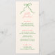Un menu de douche à bulles avec un magnifique arc dessiné à la main dans un style amusant et ludique, accompagné d'une police décontractée manuscrite dans un amusant jeu de couleurs vert et corail. Ce menu peut être customisé avec le nom du client.