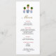 Make your Christmas dinner special with this customized dinner menu with elegant watercolor illustration of Boxwood topiary with red bow.