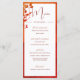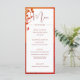 Une terre cuite orange brûlée fleurie Moderne Elégant Menu de Mariage design. Un menu de mariage personnalisé avec vos informations facilement changé pour customiser votre mariage stationnaire. Mariage personnel stationnaire de la gamme Fine Designs de Chessie.
