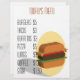 Un dépliant pour un menu thématique burger pour un événement scolaire, une collecte de fonds ou tout autre événement nécessitant un menu.