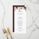 Cette carte de menu de calligraphie florale de printemps bordeaux est parfaite pour un mariage simple. Le design peint à la main est composé de feuilles verts, de rose éblouissant, de rousse, de violet, de rouge, de blanc et de roses bourguignons éblouissants, de pivoines soigneusement disposées dans de petits bouquets mignons. Ce menu peut être utilisé pour une réception de mariage, un dîner de répétition, une douche nuptiale ou tout événement.