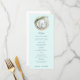 Montrez votre menu de réception de plage avec ce beau menu de dîner formel surfboard. Ce design a une image aquarelle d'un cadre de plage tropicale avec des décorations de Noël. Les couleurs utilisées comprennent, ardoise bleue, vert forêt, ivoire et bronzette.