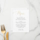 Présentez vos choix de dîners dans une élégante simplicité avec cette carte de menu mariage. Doté d'un script luxueux de style or et d'un texte serif classique sur un arrière - plan blanc, il affiche vos cours dans une mise en page raffinée. L'effet d'or imprimé donne l'apparence d'une sophistication métallique sans impression de feuille. Entièrement personnalisable pour correspondre aux détails de votre menu. Parfait pour des célébrations modernes, minimalistes ou haut de gamme.